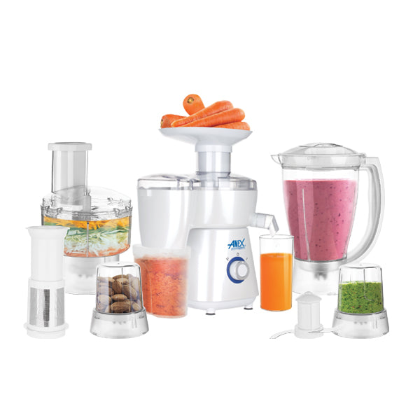Versatile Anex-2150EX kitchen robot can quickly & easily chop, blend, slice, shred, grind & puree almost any food.